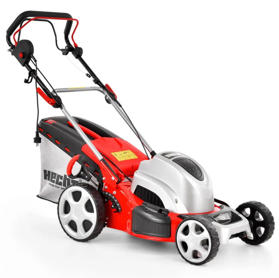 A HECHT 1805S nagyon közkedvelt elektromos fűnyíró, ami a jó felszereltségének köszönhetően sokféle funkciót tölthet be. A fűnyíró alapja a masszív fém ház, ami nemcsak elég masszív, de kellően védi a gép kezelőjét a kés által feldobott tárgyaktól. Az erős váz ellenére a fűnyíró súlya csak 31,2 kg. Az acél késeket az 1800 W teljesítményű elektromos motor hajtja meg, a kések munkaszélessége 460 mm. Ezért a fűnyírót akár 1200 m2 terület rendszeres nyírására ajánljuk. A vágási magasság központilag állítható, hét állásban, 25 – 75 mm tartományban egy robusztus kar segítségével, ami a fűnyíró házán van elhelyezve. A fogantyú rögzítése nagyon erős, így az egyáltalán nem mozog, mégis a szárnyas anyáknak köszönhetően nagyon egyszerűen leszerelhető. A fogantyú magassága állítható, ami nagyon megkönnyíti a szétszedését tároláskor. Nagy előnye a motor kapcsoló kar, ami a fogantyún végig húzódik, így akár egy kézzel is lehet irányítani a gépet, miközben a másik kezével biztonságosan tudja a vezetéket irányítani. A gépen biztonsági kapcsoló is található és a vezeték feszülését megakadályozó fül.
